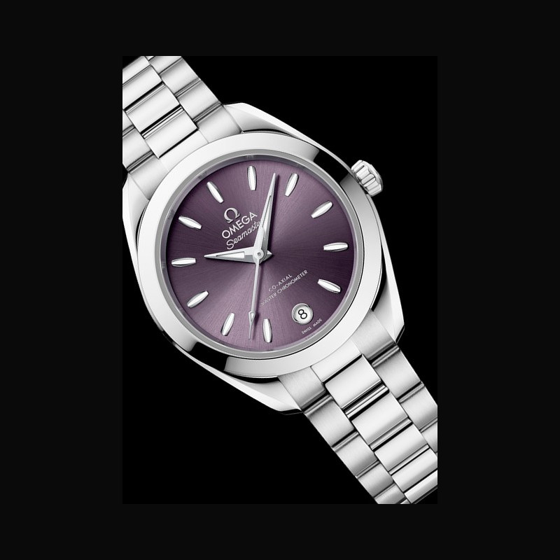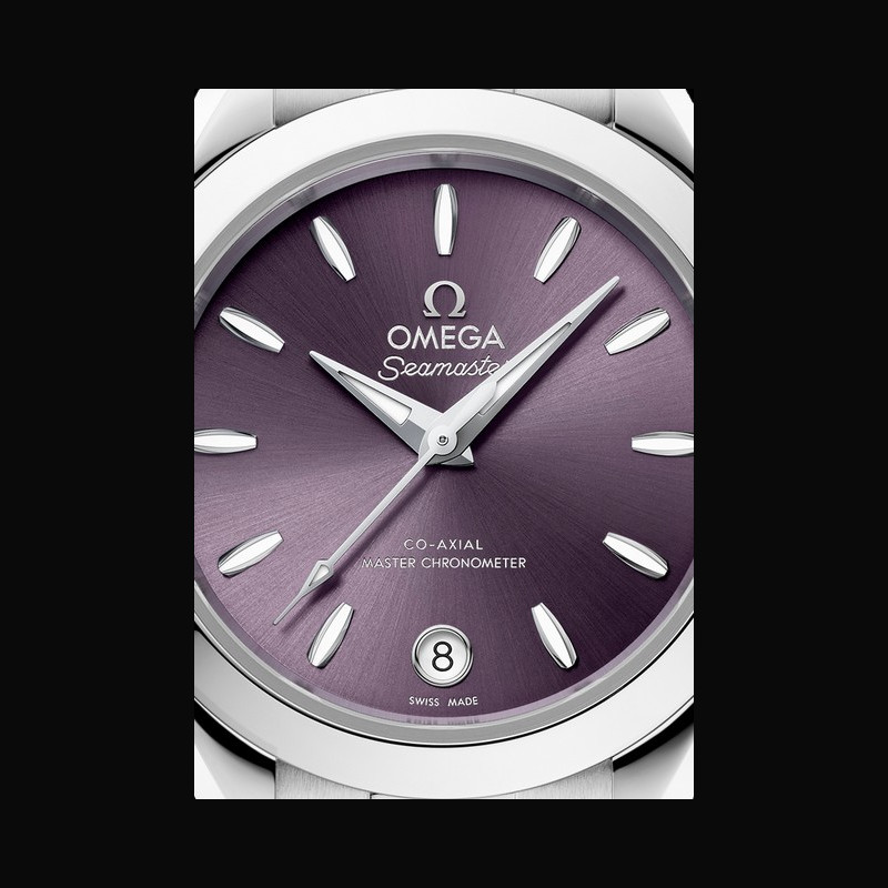 Plus de caractéristiques : | Mouvement Calibre : OMEGA 8750 Mouvement à remontage automatique équipé d’un échappement Co-Axial Certifié Master Chronometer, approuvé par METAS, résistant aux champs magnétiques allant jusqu’à 15 000 gauss Il est doté d’un balancier sans raquette avec spiral en silicium et d’un remontage automatique bi-directionnel Affichage de la date à 6 heures Rotor et ponts rhodiés avec motif exclusif Côtes de Genève en arabesque Réserve de marche : 48 heures Boitier Acier Entre-corne : 14 mm Hauteur corne à corne: 36,50 mm Cadran Lavande Bracelet / Boucles Matériau : Acier Type de fermoir : Boucle papillon avec mise à l'aise |