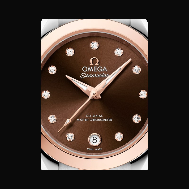 | + Plus de caractéristiques : | Mouvement Calibre : OMEGA 8750 Mouvement à remontage automatique équipé d’un échappement Co-Axial. Certifié Master Chronometer, approuvé par METAS, résistant aux champs magnétiques allant jusqu’à 15 000 gauss. Il est doté d’un balancier sans raquette avec spiral en silicium et d’un remontage automatique bi-directionnel. Affichage de la date à 6 heures Rotor et ponts rhodiés avec motif exclusif Côtes de Genève en arabesque Réserve de marche : 48 heures Boitier Acier - or « Sedna™ » Diamants Entre-corne : 14 mm Hauteur corne à corne: 36,50 mm Cadran Marron Bracelet / Boucles Matériau : acier - or « Sedna™ » Type de fermoir : Boucle papillon avec mise à l'aise |
