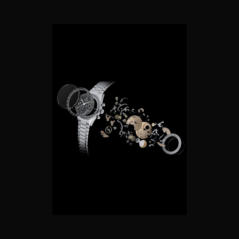 Le boîtier de 39,70 mm en acier inoxydable s'inspire du modèle de 3e génération porté par Ed White. Il est doté d’une lunette en céramique [ZrO2] noire polie et d’une échelle tachymétrique en émail blanc. Le cadran noir à degrés est orné d'aiguilles Moonwatch signature, d'un compteur de petite seconde, d'un compteur des 30 minutes, d'un compteur des 12 heures et de l'aiguille centrale du chronographe.