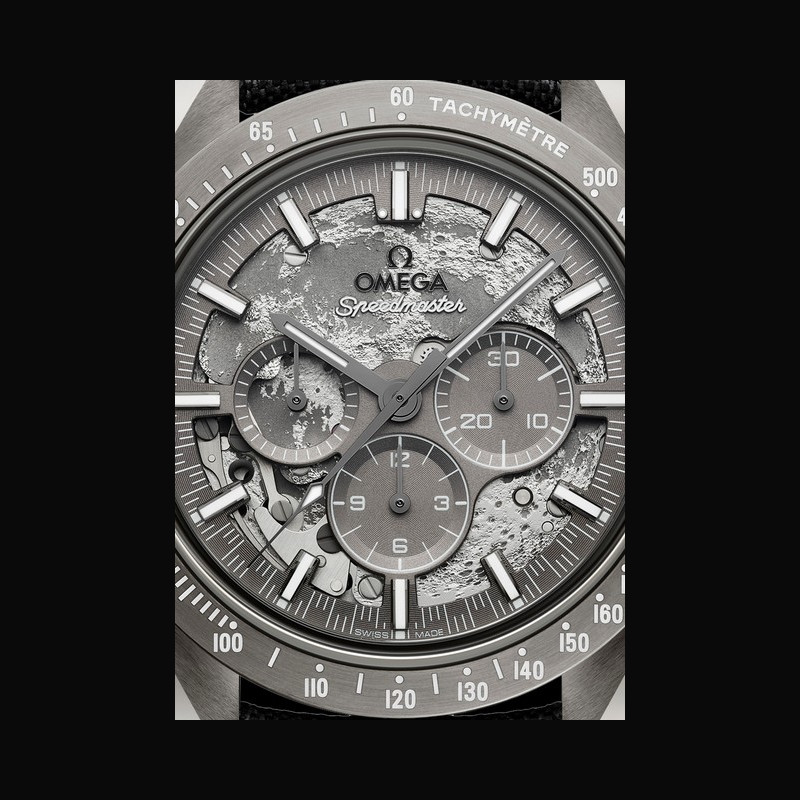 Pour compléter ces avancées techniques, OMEGA propose de nouvelles options de bracelets. Les bracelets en nylon sont désormais doublés de caoutchouc pour un confort accru, tandis que les nouveaux bracelets en caoutchouc arborent des motifs inspirés de la surface lunaire au revers, offrant un lien tactile avec l’héritage de l’exploration spatiale.