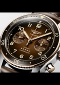 Ces deux nouveaux chronographes se parent d’une couronne et de poussoirs en or jaune 18 carats sur le modèle au cadran vert, et en or rose 18 carats sur celui au cadran brun. Leur lunette tournante bidirectionnelle est réhaussée d’une coiffe en or jaune ou en or rose et d’un insert en céramique vert ou brun. Surmontés d’une glace saphir anti-reflets multicouches, les cadrans en vert mat dégradé ou en brun mat dégradé sont bordés d’une petite seconde à 9 h et d’un compteur 30 minutes à 3 h. Les aiguilles et chiffres dorés jaunes ou dorés roses, recouverts de Super-LumiNova® Old Radium, offrent une lisibilité optimale en toute circonstance, dans les airs comme sur terre.