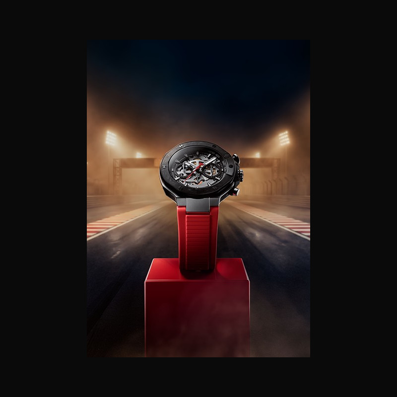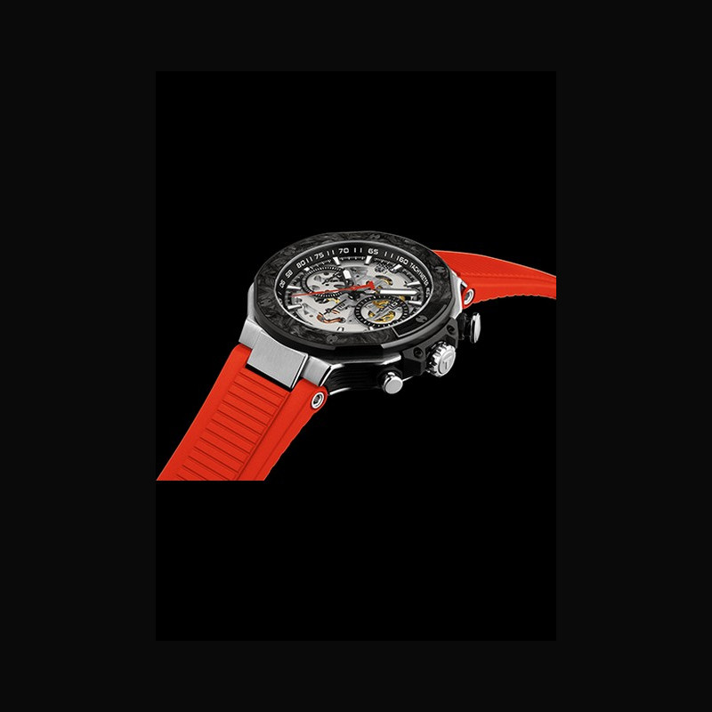 Au coeur de la montre, le célèbre mouvement Valjoux A05.951 squeletté est révélé par un cadran ajouré qui dévoile la mécanique de la montre. Ce puissant mécanisme est logé dans une boîte résistante de 45 mm en acier inoxydable, surmontée d’un insert en carbone forgé sur la lunette revêtue de PVD noir, un matériau léger et de haute technologie étroitement associé à l’ingénierie de performance.