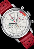 Les éléments de design comprennent le bracelet en cuir perforé sur le thème de la course automobile, un tachymètre pour mesurer la vitesse et des sous-cadrans contrastants « squircle » (mi-rond, mi-carré) qui évoquent les jauges des tableaux de bord vintage. Tout comme son prédécesseur des années 1960 axé sur le style, le boîtier en acier inoxydable de 41 mm de la Top Time est confortable pour les amateurs de voitures et de montres de tous bords.