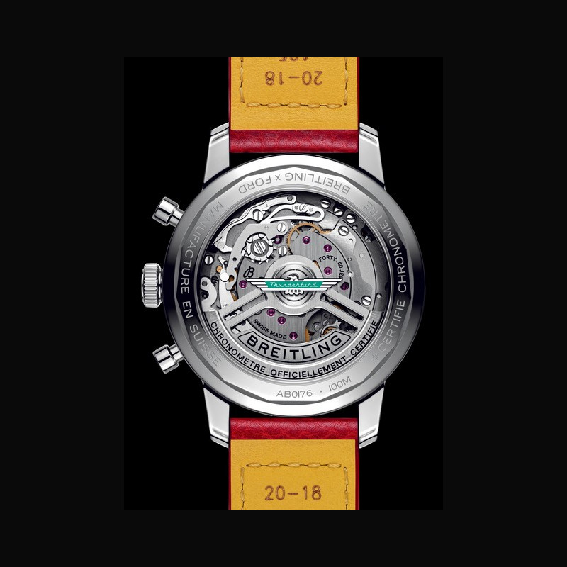 La nouvelle collection Classic Cars comprend désormais le modèle Ford Thunderbird, doté d’un bracelet rouge et d’un cadran blanc épuré qui attire le regard vers le logo bleu sarcelle de Thunderbird et les aiguilles rouges du chronographe. Les quatre montres arborent les couleurs et les emblèmes de leurs voitures de sport des années 1950 et 1960, et sont toutes dotées d’un nouveau moteur digne de ce nom : le Calibre Manufacture Breitling 01.