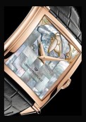 Les artisans de Girard-Perregaux rendent hommage à l’un de ses travaux de jeunesse en le reproduisant fidèlement en bas-relief de nacre ce qui rappelle à la fois l’œuvre elle-même et les débuts de Le Corbusier en tant que graveur-ciseleur.