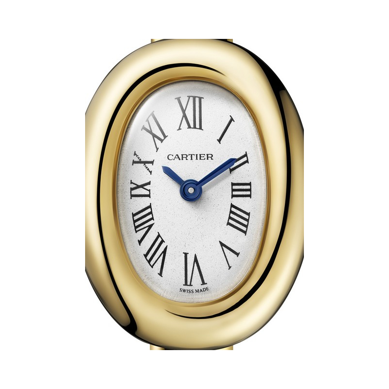 Cette année, changement d’échelle, changement de fonction. Par un nouveau rapport de proportions, le cadran et ses chiffres romains signature sont couronnés d’un ruban d’or plus gourmand. Cartier explore l’ovale du cadran, signature de la montre, et le transpose en un jonc à glisser au plus près du poignet. Naissance d’un objet hybride, précieux : une montre qui est aussi un bijou.