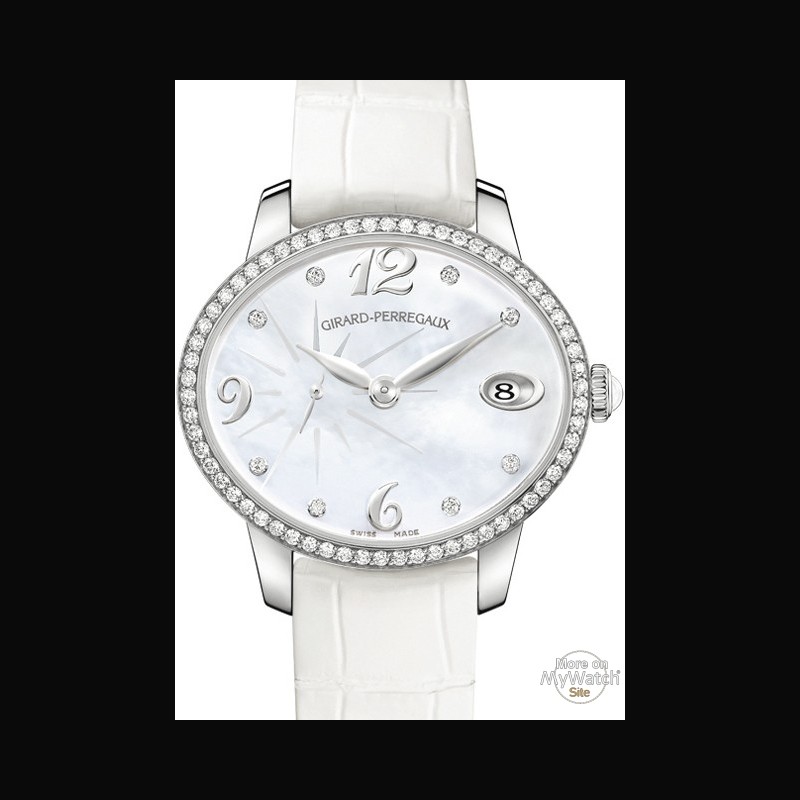 | Plus de caractéristiques : | Mouvement Calibre : 11 ½ ’’’ 28 rubis Fréquence : 28 800 alternances /heure (4 Hz) Réserve de marche : minimum 46 heures Masse oscillante en or rose finement gravée d’un motif reproduisant les lettres « GP » Boîtier serti de 62 diamants (~ 0.85 cts) Fond saphir fermé par 4 vis Bracelet en alligator avec boucle déployante ou boucle ardillon Également disponible avec un boîtier en or rose Et/ou un cadran de nacre foncée |