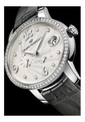 | Plus de caractéristiques : | Mouvement Diamètre: 25.60mm (11 1/2 ’’’) Fréquence: 28’800 Alt/h - (4 Hz) Réserve de marche: min. 46 heures Rubis: 27 Fonctions: heure. minute. petite seconde. date. indicateur de réserve de marche Boîtier en acier Fond: glace saphir. fermé par 4 vis Sertissage Boîtier: 64 diamants taille brillant ~ 0.95 ct Cadran: 8 diamants taille brillant ~ 0.10 ct Sertissage total: 72 diamants taille brillant ~ 1.05 cts Bracelet en alligator noir Boucle déployante en acier |