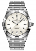 | + Plus de caractéristiques : | Mouvement Calibre Breitling 77 Diamètre : 23,30 mm Epaisseur : 3,22 mm Mouvement : SuperQuartz™ thermocompensé Durée de vie de la batterie : environ 3 à 4 ans Boitier Acier inoxydable Cadran Blanc Bracelet / Boucles Rouleaux en acier inoxydable à boucle déployante |