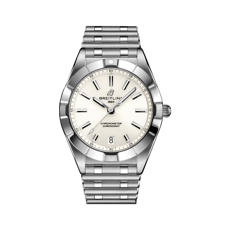 La Chronomat 32, quant à elle, est animée par le Calibre Breitling 77, et a une autonomie de trois à quatre ans. Elle est disponible en sept versions avec des cadrans blancs ou bleu nuit.