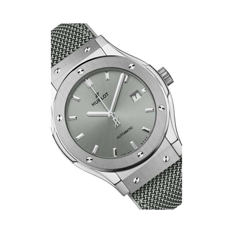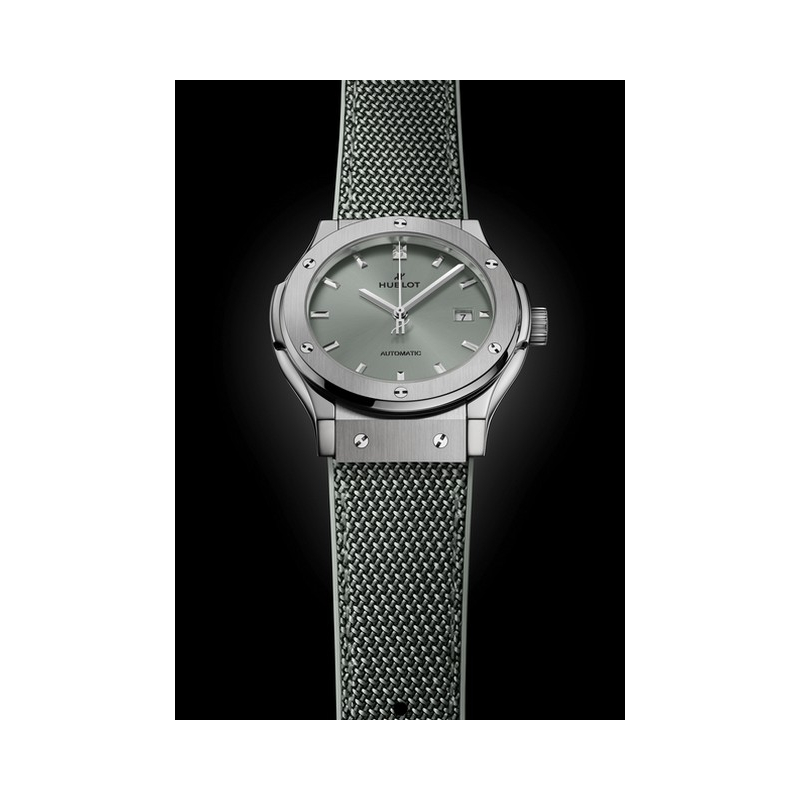 | Plus de caractéristiques : | Mouvement HUB1110 Mouvement à remontage automatique Date : guichet à 3 h Nombre de composants : 177 Rubis : 25 Fréquence (Hz) : 4 Hz (28'800 Alt/h) Réserve de marche : env. 48 h Case Satin-finished and polished titanium Dial Satin-finished Sage Green sunray Strap / Buckles Sage Green rubber with Sage Green fabric Stainless steel deployant buckle clasp |