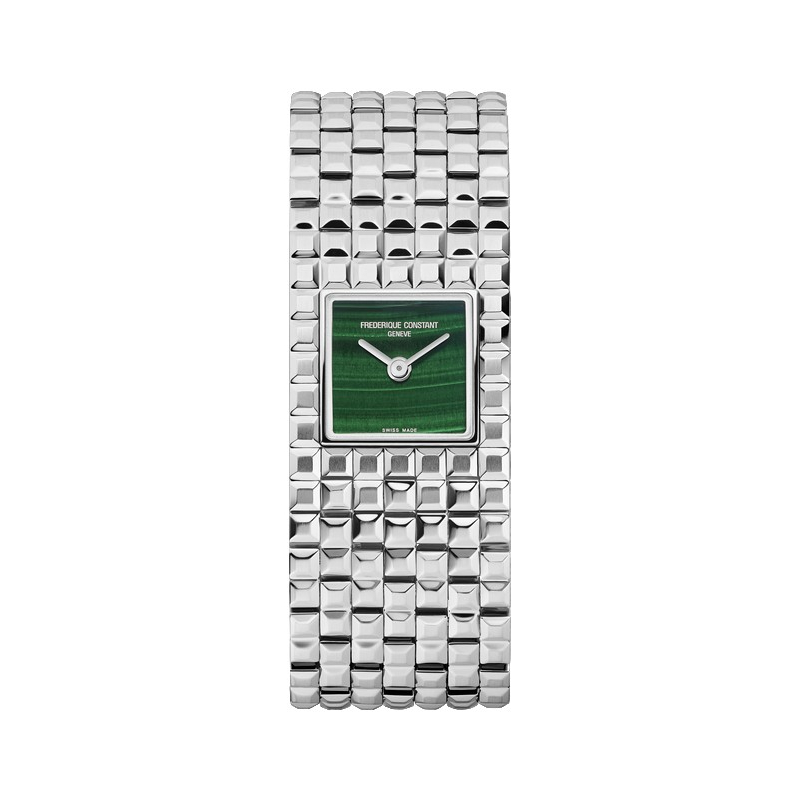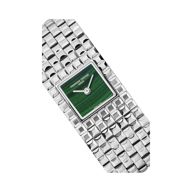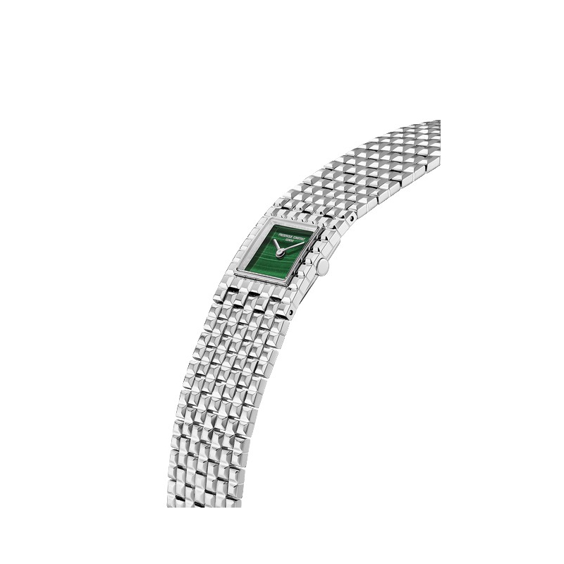 Plus de caractéristiques : | Mouvement Calibre FC-200, quartz 60 mois d’autonomie de batterie, 4 rubis Boitier Acier Inoxydable poli en deux parties Cadran Malachite Bracelet / Boucles Acier inoxydable à 7 maillons Clous-de-Paris, brossé et poli Boucle déployante |