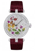 Disponibles sur bracelet alligator, ces pièces d’exception peuvent également être accompagnées d’un bracelet joaillier particulièrement virtuose. Le thème du cadran se prolonge grâce à une élégante composition en diamants et pierres de couleur : ailes de papillon en saphirs ou feuilles multicolores virevoltant dans la brise. Grâce au système d’emmaillement spécialement conçu pour ces pièces, le décor conserve sa forme et sa régularité tout en épousant la courbure du poignet.