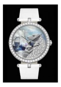 | Cadran : | Email champlevé Serti de diamants Marqueterie de nacre Sculpté Or blanc |