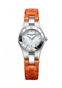 Une et plurielle à la fois, la Linea proposée en 27 mm de diamètre avec un mouvement à quartz, se porte sur un bracelet en cuir d’agneau tressé main de couleur orangée. Cette teinte retenue comme faisant partie des cahiers de tendances pour la saison Printemps / Été 2013 devrait séduire les femmes et donner une nouvelle dimension à ce bijou horloger subtil et féminin. Cette montre en acier polie et satinée au cadran en nacre et finitions azurées, fait la démonstration de sa polyvalence en ayant l’opportunité de mettre à profit l’interchangeabilité de son bracelet.
