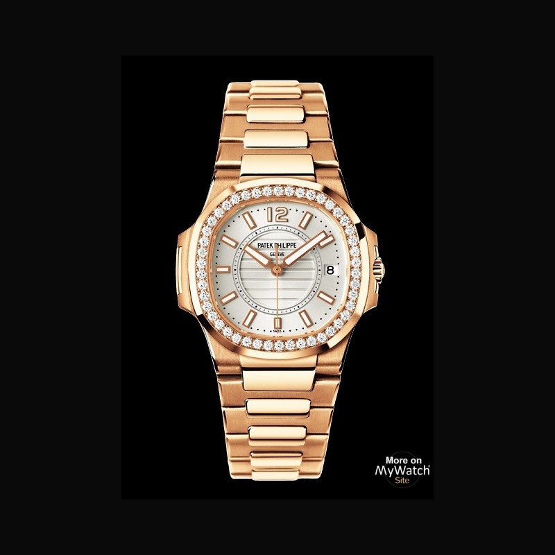 La Nautilus Dame est lancée exclusivement en or 18 carats gris ou rose. La nouvelle conception du boîtier en trois pièces assure la même robustesse que celle du boîtier original monocoque ainsi qu’une étanchéité allant jusqu’à 60 mètres de profondeur. Patek Philippe a conservé la construction unique du boîtier Nautilus basée sur le fameux mécanisme de «hublot» permettant de fixer et serrer hermétiquement la lunette sur la carrure. Mais ses deux charnières, autrefois rectilignes, affichent maintenant – comme sur les Nautilus hommes – une légère courbure faisant écho au profil arrondi de la lunette. Le diamètre du boîtier a été agrandi par ailleurs à 32 mm. Ces évolutions au niveau du style et de la taille donnent à la montre une nouvelle élégance contemporaine. Patek Philippe a également redessiné le bracelet en adaptant ses proportions au format du boîtier retouché. Le design intégré du bracelet prolonge de manière harmonieuse la découpe de la carrure. Les maillons toujours plus étroits se terminent par une boucle déployante offrant un maximum de confort et de sécurité. Les finitions ont été elles aussi retravaillées pour accroître la douceur du toucher. Comme sur le bracelet original, les maillons extérieurs sont satinés, les maillons centraux polis miroir.
