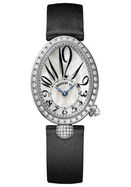 | + Plus de caractéristiques : | Mouvement Mouvement mécanique à remontage automatique cal. 586/1 Numéroté et signé Breguet 63/4 lignes 29 rubis Réserve de marche de 38 heures Spiral en silicium Fréquence 3 Hz Ajusté dans 6 positions Pierres 29 Fréquence 3 Masse oscillante Platine Nombre de composants 180 Boitier Or blanc 18 carats de forme ovoïde Cadran Nacre naturelle blanche Bracelet / Boucles Satin avec boucle déployante en or sertie de 26 diamants taille brillant (env. 0,12 ct) |