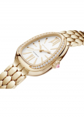 | + Plus de caractéristiques : | Mouvement Remontage automatique, mouvement de manufacture Lady Solotempo BVS100. Masse oscillante ornée du logo Bvlgari et d’écailles de serpent Réserve de marche : 50 h Boitier Or jaune Cadran Opaline blanche Bracelet / Boucles Bracelet souple en or jaune avec boucle déployante |
