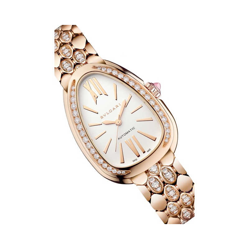 | Calibre distinction : | Masse oscillante décorée du logo Bvlgari et d'un motif en écailles de serpent |
